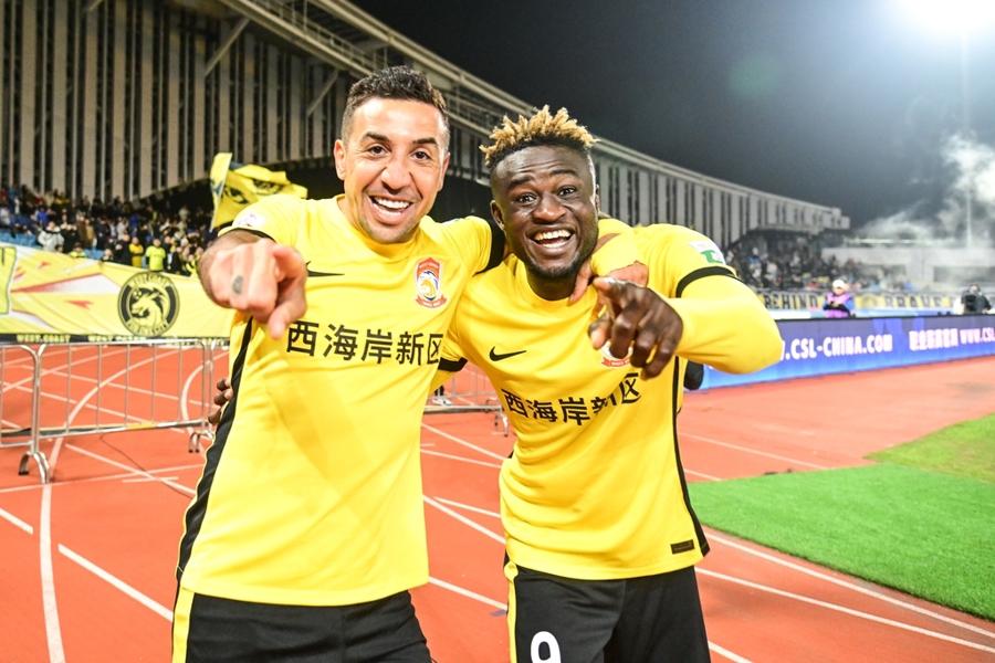阿齐兹两送助攻,戴维森(右)梅开二度,青岛西海岸搅乱中超争冠形势