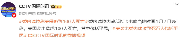 据CCTV国际时讯消息,委内瑞拉内政部长卡韦略当地时间1月7日晚称,美国袭击造成100人死亡,其中包括平民。
