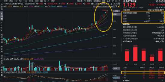 伴随火热上涨的行情,资金积极进场抢筹!截至发稿,有色ETF华宝(159876)获资金实时净申购4020万份!拉长时间来看,近10日连续吸金,合计狂揽3.87亿元!