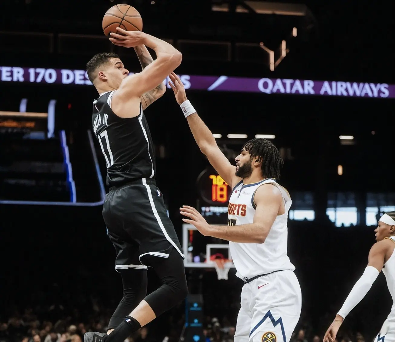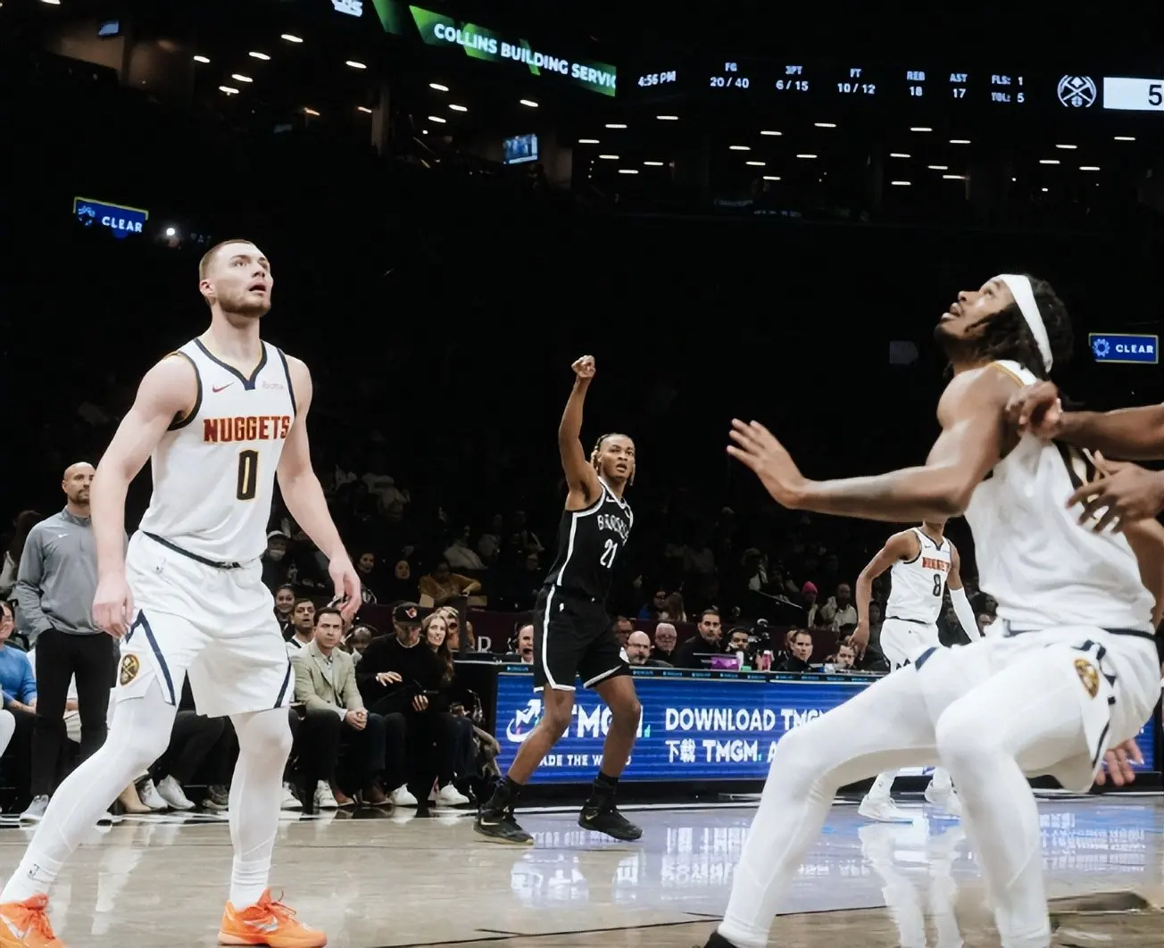 次节比赛,两队上来还是你来我往,不过篮网还是占据一些主动,扎威反击打成2+1,皮克特三分回敬,掘金刚要追上比分,篮网就能够做出回应,杰明三分命中,戈登篮下打进止血,随着波特反击扣进,分差拉开到两位数,穆雷跳投命中,半场打完掘金52-59落后篮网。